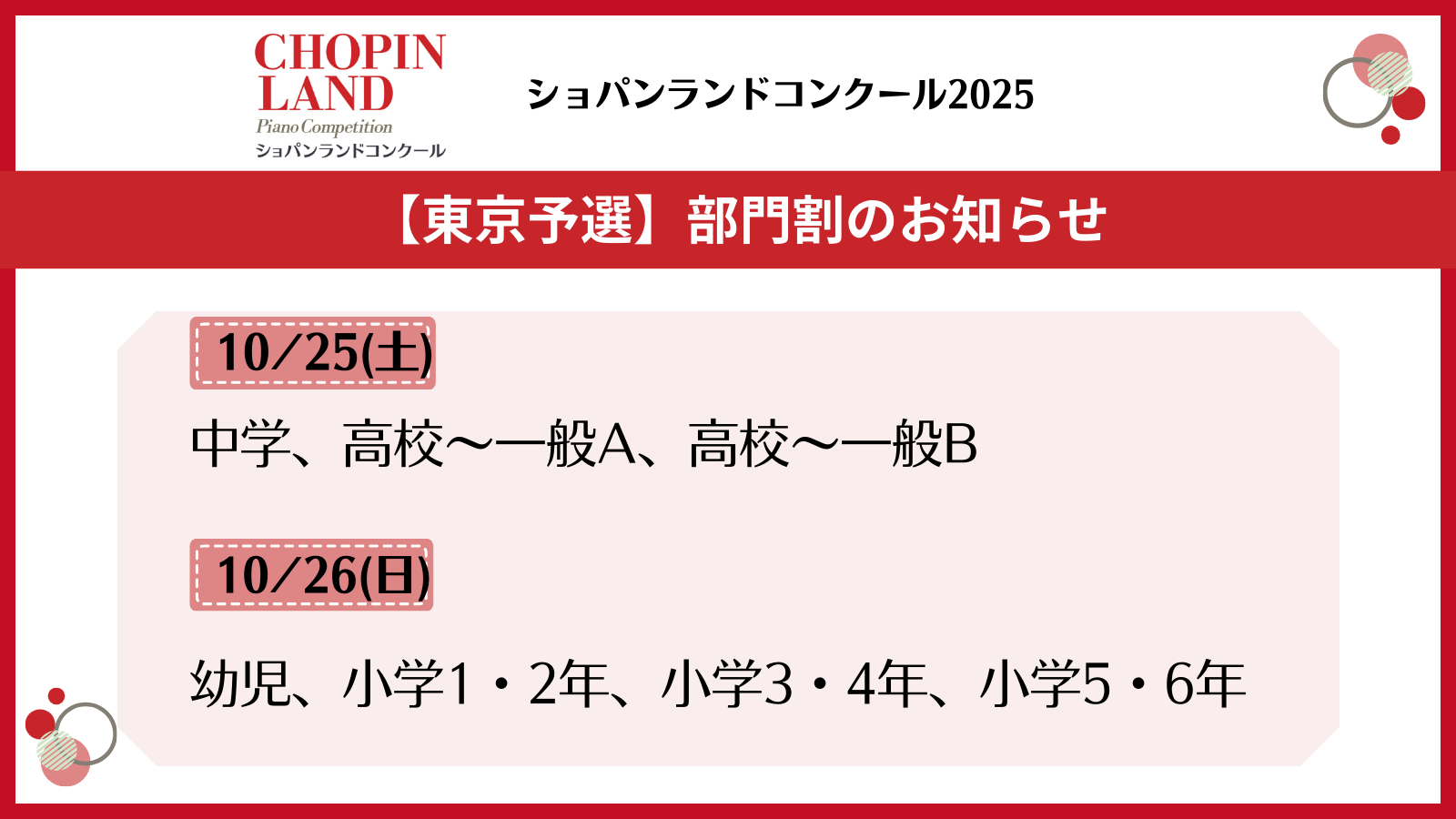 東京予選の部門ごとの日程を公開いたしました。