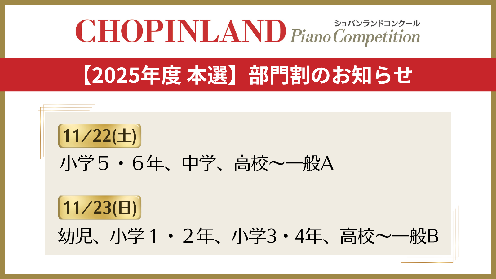 ※演奏順は、必ずしも学年の小さな部門からになるとは限りません。部門ごとの演奏時間は、時間割の公開までお待ちください。