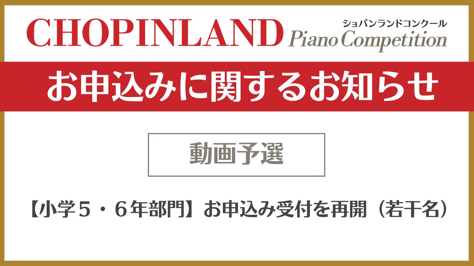 【動画予選】お申し込み受付再開のお知らせ(小学5・6年部門)