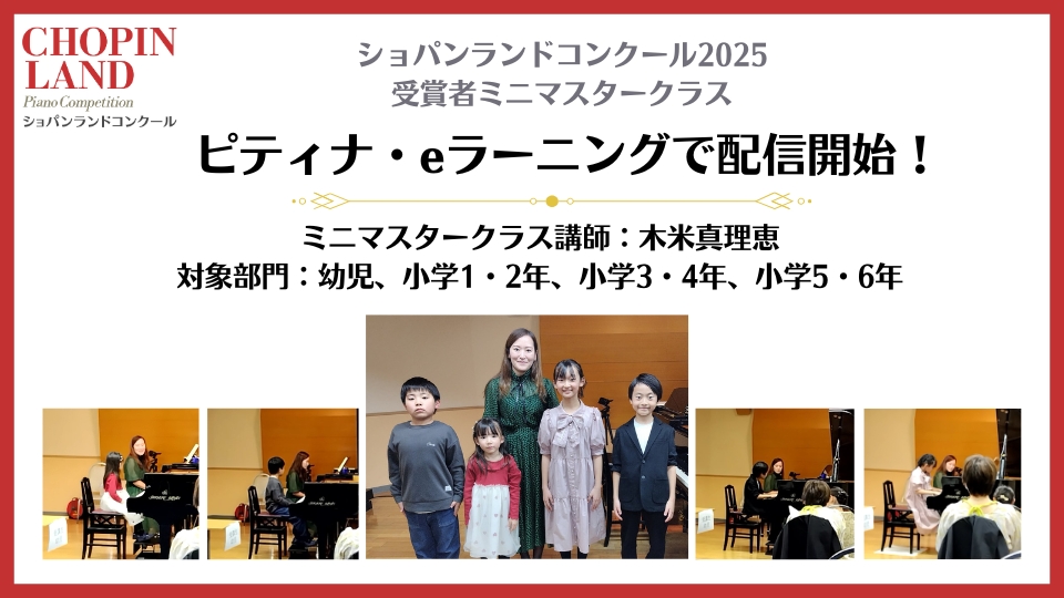 2025年11月24日(月・祝)に開催いたしました、受賞者ミニマスタークラス(講師:木米真理恵先生)のレッスン動画を、ピティナ・eラーニング* および YouTubeメンバーシップにて公開いたしました!